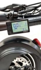 Для удобства водителя на руль вынесен бортовой компьютер. Экран показывает текущую скорость, время и оставшийся заряд батареи.