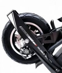 Широкие надувные колеса диаметром 10 дюймов являются универсальным решением. Они способны быстро набирать скорость, а затем долго сохранять накат. Также они хорошо справляются с неровностями местности и сглаживают кочки. Передний амортизатор придает дополнительного комфорта при движении по пересеченной местности. Колеса покрыты крыльями, которые защищают ездока от грязи.