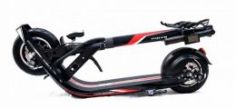 Каркас и рама самоката изготовлены из прочного сплава, который выдерживает до 120 килограмм под нагрузкой. При этом полный комплект весит 13.5 кг. Наличие складного механизма и подножки делает конструкцию удобной для хранения в квартире и транспортировки по городу. Чтобы сложить руль к платформе достаточно нажать рычаг, после чего самокат станет гораздо меньше.