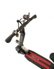 Для экстренных ситуаций у электросамоката Coolco M4 есть звуковой сигнал, чтобы привлечь внимание, и два дисковых тормоза, чтобы быстро затормозить. Кнопка подачи звукового сигнала и рычаги тормозов находятся на руле.