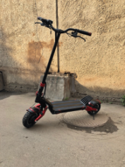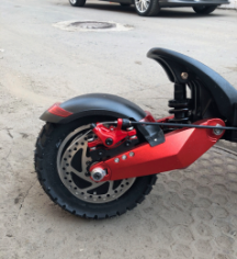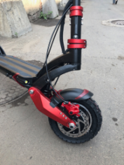 Самокат оборудован надежным электрическим двигателем мощностью 2000 Вт, что считается высоким показателем. Его достаточно для быстрого разгона до скорости в 65 км/ч. При этом стабильные обороты гарантируют плавность хода.