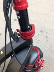 Наличие складного механизма упрощает транспортировку самоката и его хранение в квартирных условиях. Чтобы сложить руль с рамой достаточно нажать на рычаг.