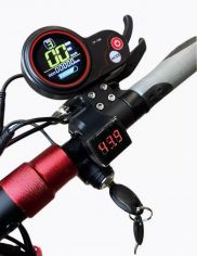 На руле установлена информационная панель. Она показывает актуальную информацию: скорость, обороты двигателя и передачу. Для удобства при езде модель оборудована широкой декой. На ней легко стоять при движении по любой дороге. Дека и руль покрыты антискользящим материалом.
