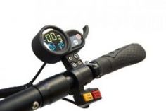 Дисплей, расположенный на руле для наблюдения режимов работы самоката и зарядке батареи. Для перемещения самоката предусмотрен складной механизм.