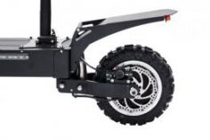 Колёса 11 дюймов для высокого клиренса с большим протектором и хорошая амортизация для комфортных поездок по лесным дорожкам. Дисковые тормоза на обоих колесах для плавного и быстрого торможения. Для остановок предусмотрена подножка, которая дает возможность оставить самокат в вертикальном положении.