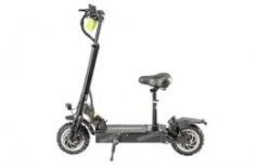 На самокате установлены два широких 11 дюймовых мотор колеса общей мощностью 3200W. Модель выглядит агрессивно, мощно, брутально.