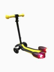 Привычное и вместе с тем оптимально усовершенствованное средство передвижения для детей от 3 лет – трехколесный самокат. Имеет оригинальную подсветку и яркий дизайн, у заднего колеса расположены свето-звуковые турбины, которые при движении могут имитировать вырывающееся из сопла пламя и звук ревущих турбин. Для этого достаточно залить воду в сопло и благодаря эффекту холодного пара самокат станет «реактивным».