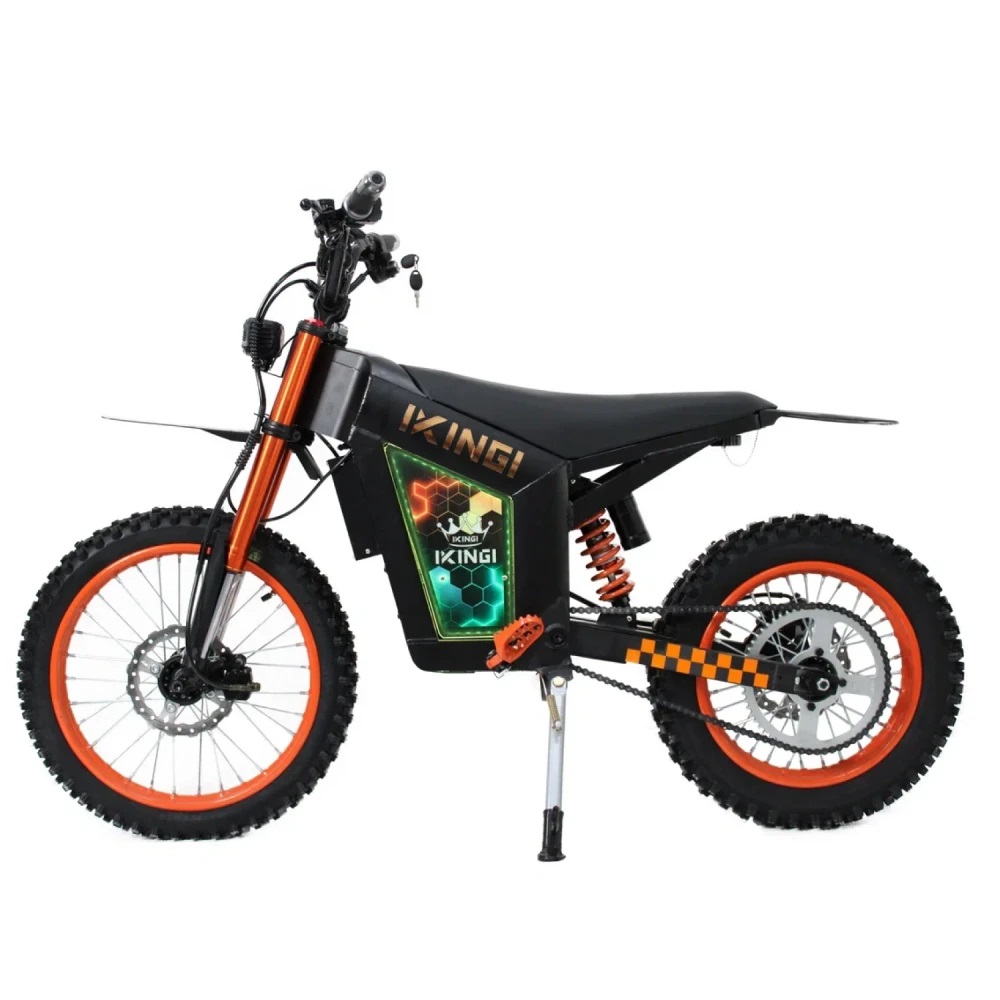 Электрический питбайк Ikingi S7 способен разогнаться до 75 км/ч и проехать до 60 км на одном заряде аккумулятора.
