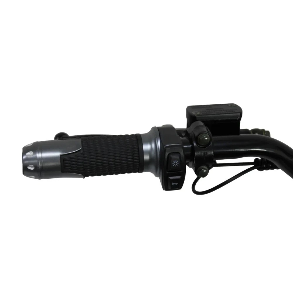 Газомасляная подвеска. Электрический питбайк имеет сблансированную подвеску передней вилки и задней оси, благодаря чему байк легко рулится и проезжает неровности на дороге. Передняя и задняя подвеска имеет регулировку жесткости.
