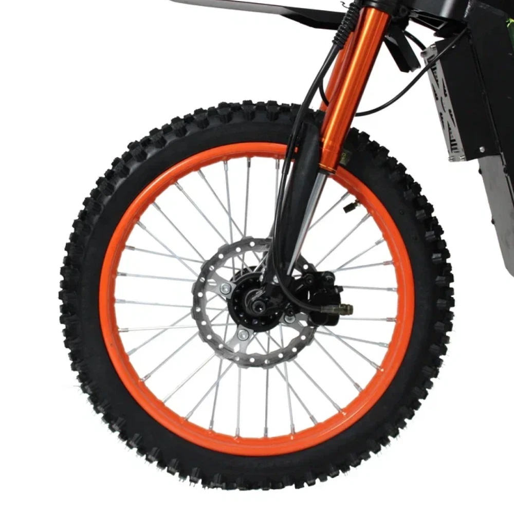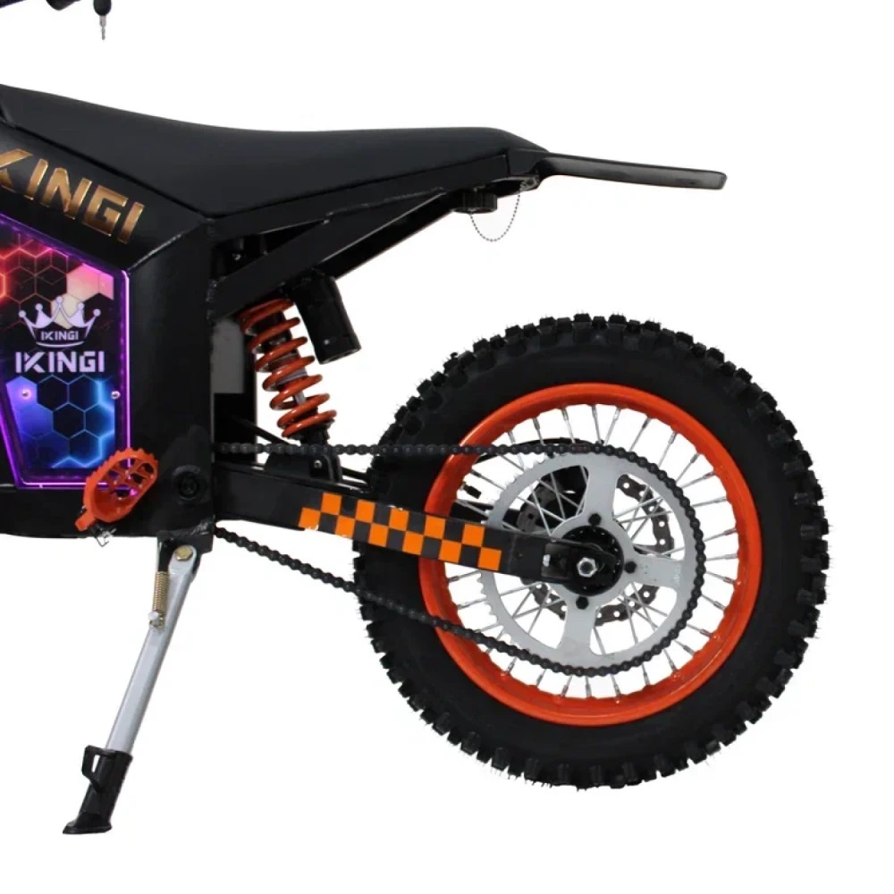 Безусловный прорыв в сфере электрических питбайков. Имеет пиковую мощность 3000W, что позволяет разогнаться до 75 км/ч. Оснащен аккумулятором 52V30AH , пробег на одном заряде до 60 км. Вес электропитбайка 50 кг.