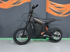 Электропитбайк имеет пиковую мощность 3000W, что позволяет разогнаться до 60 км/ч. Оснащен аккумулятором 52V28AH , пробег на одном заряде до 60 км. Вес электропитбайка 47 кг.