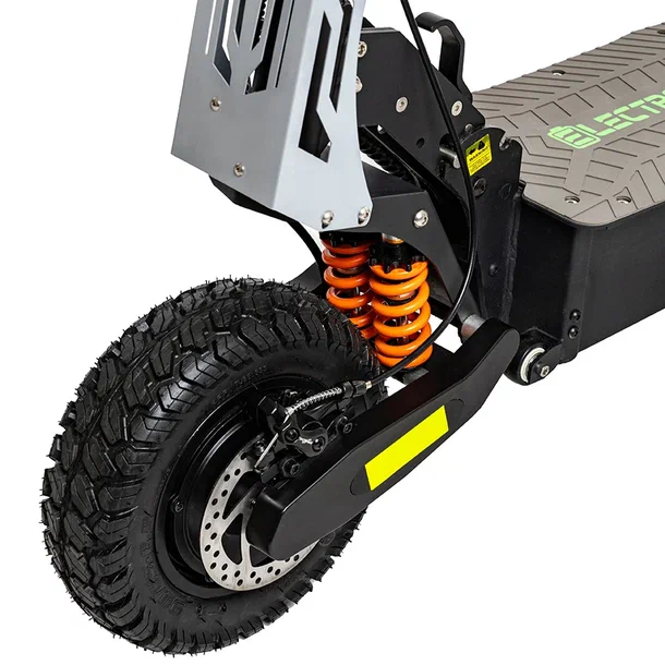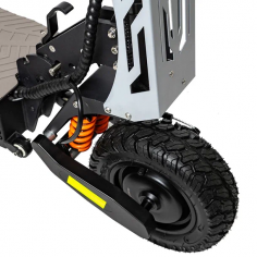 Электросамокат Electroway F5 имеет эффективную систему амортизации для комфортного передвижения по дорогам c неровным покрытием. С диаметром колес в 11 дюймов и внедорожными покрышками, этот самокат легко справляется с бордюрами, лежачими полицейскими и другими препятствиями.