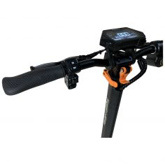 Управление транспортным средством максимально комфортное, благодаря анатомическим грипсам на руле и большому многофункциональному дисплею. На экране дисплея отображается текущая скорость, заряд аккумулятора и пройденное расстояние. Показатели динамично меняются в процессе движения. На левой ручке установлены клавиши управления боковыми поворотниками, управление светом и звуковой сигнал. На правой ручке вольтметр и курок газа. По обеим сторонам расположены рукояди тормоза.