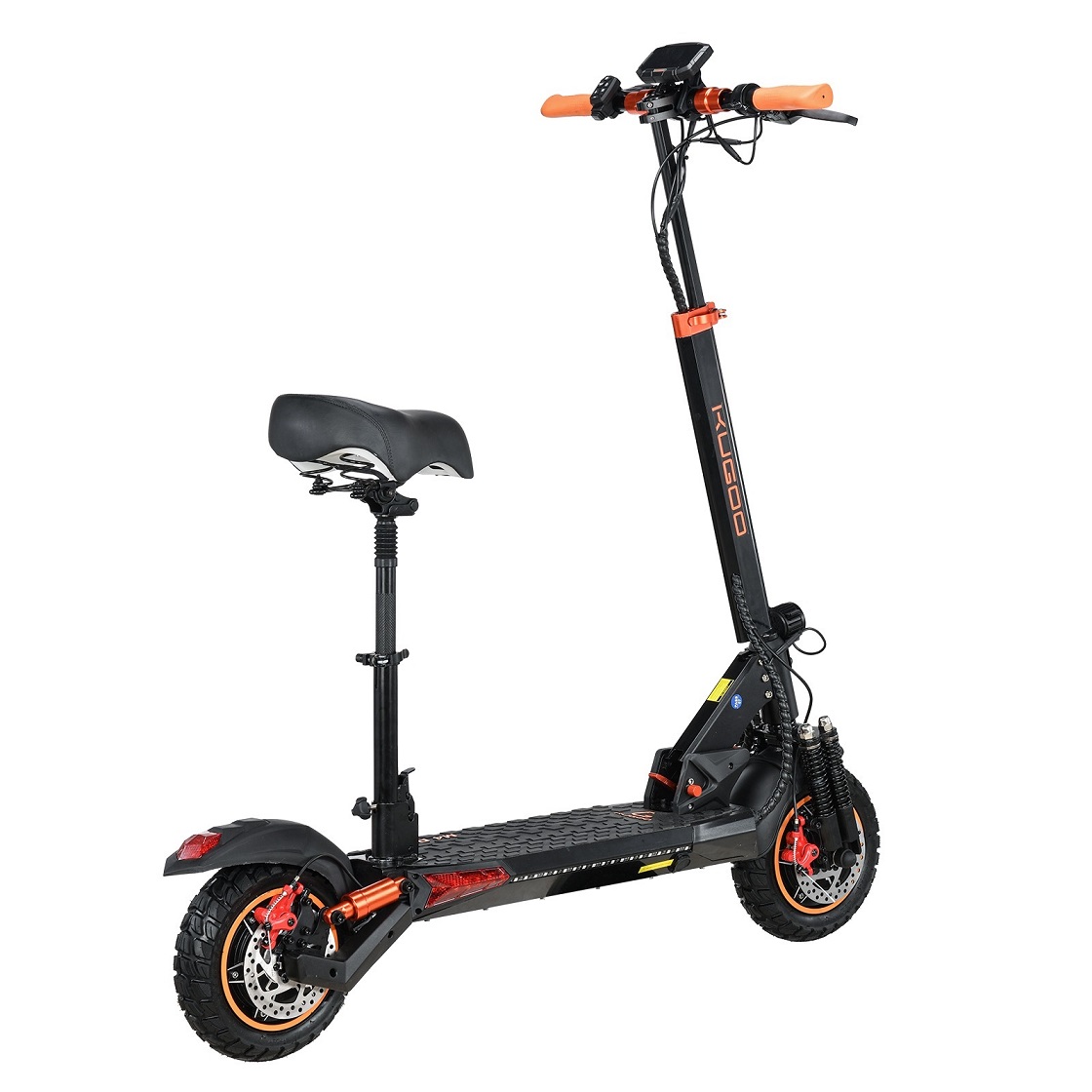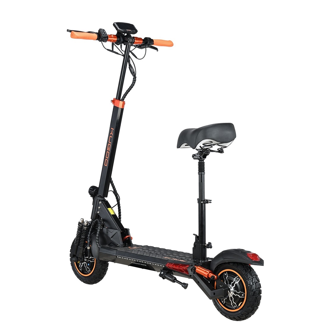 В комплектацию входит эргономичное сиденье, которое снижает нагрузку на спину и ноги во время длительных поездок. Регулируемое сиденье и рулевая стойка позволяют адаптировать транспортное средство под индивидуальные потребности пользователя. Сиденье можно легко демонтировать, что позволяет использовать транспортное средство стоя.