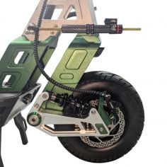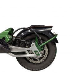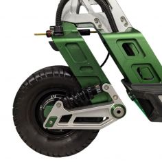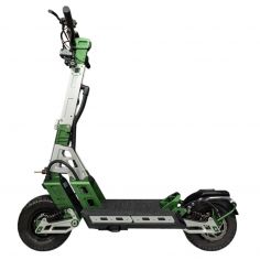 Имеет два мотор-колеса по 60V 1600Вт каждое, что позволяет самокату разгоняться до 100 км/ч. Установленный усилитель руля предотвращает потерю управления на высокой скорости.