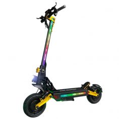 Рулевая стойка электросамоката имеет RGB подсветку, которая мигает в такт с Вашей музыкой передаваймой по Bluetooth.