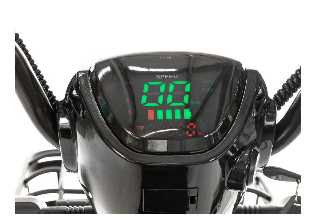 Двигатель мощностью 1000 Вт в стандартном режиме и способный развивать мощность до 2000 Вт в пиковом режиме обеспечивает уверенное движение со скоростью до 40 км/ч. Ёмкий аккумулятор ёмкостью (60 В 23 А·ч) позволяет преодолевать расстояния до 30-40км, что идеально подходит для ежедневных поездок по городу.