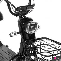 Для обеспечения безопасности во время езды велосипед оборудован передним фонарём, задним стоп-сигналом, поворотниками и системой сигнализации.Практичность модели также обеспечивают вместительная корзина и дополнительное сиденье со спинкой, что делает поездки более комфортными и удобными. Большой дисплей, размещённый в центре, позволяет легко отслеживать все важные параметры во время движения.