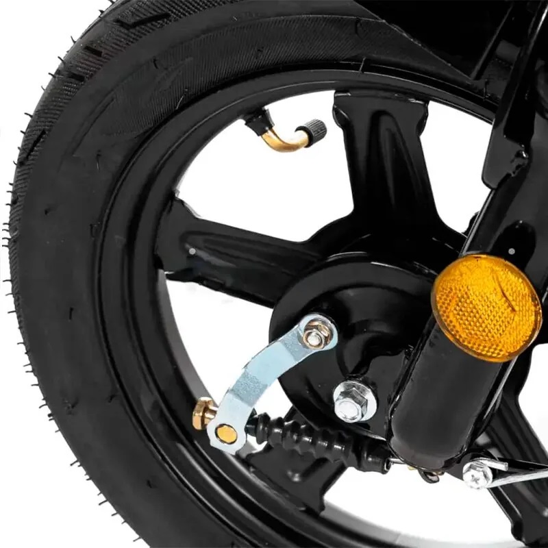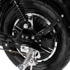 Скутер оснащен тщательно разработанной конструкцией, включающей 14-дюймовые пневматические колеса и двойную систему амортизации (переднюю и заднюю), что обеспечивает плавное и комфортное перемещение даже по неровным городским поверхностям. Задний привод гарантирует высокую управляемость и надежное сцепление с дорожным покрытием в различных климатических условиях.