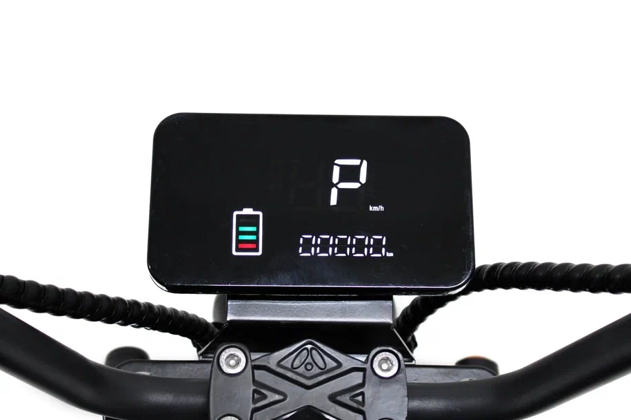 На руле электроскутера установлен многофункциональный LCD-дисплей, который отображает ключевые параметры, такие как скорость движения, уровень заряда аккумулятора, а также другие критически важные данные, необходимые для эффективного управления и мониторинга работы электроскутера. Удобные рукоятки и кнопки управления обеспечивают комфортное управление и маневренность.