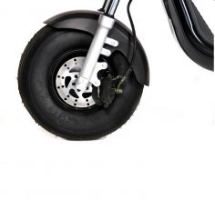 Скутер оснащен гидравлической дисковой тормозной системой, обеспечивающей эффективное и безопасное торможение в различных дорожных условиях. Задний привод с напряжением 48 В обеспечивает отличную динамику и устойчивость при движении.