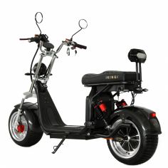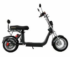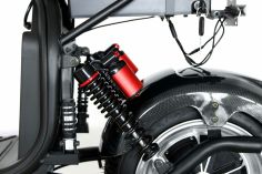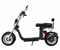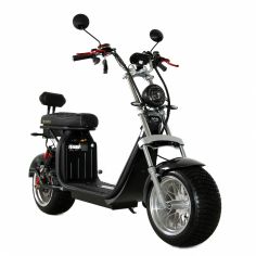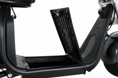 Электроскутер выполнен из прочных материалов, сплав рамы надежный и способен выдерживать нагрузку до 250 кг. Двойное сиденье скутера позволяет с комфортом разместиться двум людям. Литые диски диаметром 12 дюймов и универсальный протектор на резине обеспечивают отличное сцепление как на асфальте, так и на грунтовой дороге.