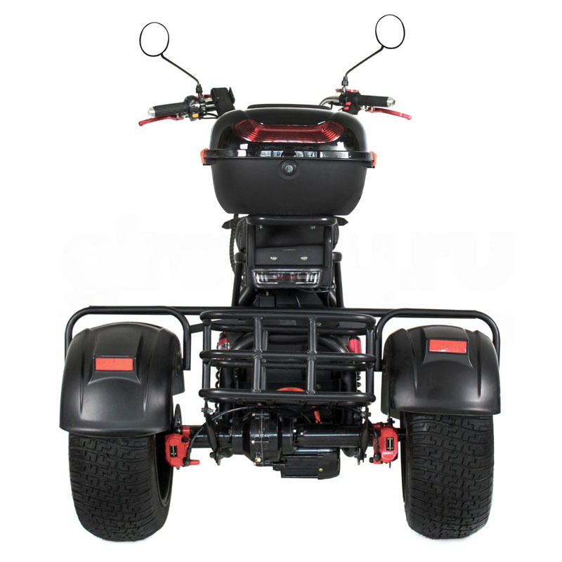Мощность и проходимость. Благодаря мощному мотору 3000 Вт скутер легко преодолевает подъёмы и неровности, обеспечивая плавный разгон и отличную тягу при полной загрузке.