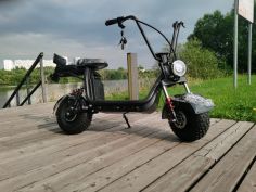 Особенности электроскутера: - Удобное анатомическое двойное сидение; - Подножки для пассажира и спинка; - Мощность 1000 Вт - Аккумуляторная батарея: съемная Li-ion (Литий-ионная) 48V/18000 mAh; - Экран с отображением скорости и заряда; - Передний и задний амортизатор; - Гидравлические тормоза;