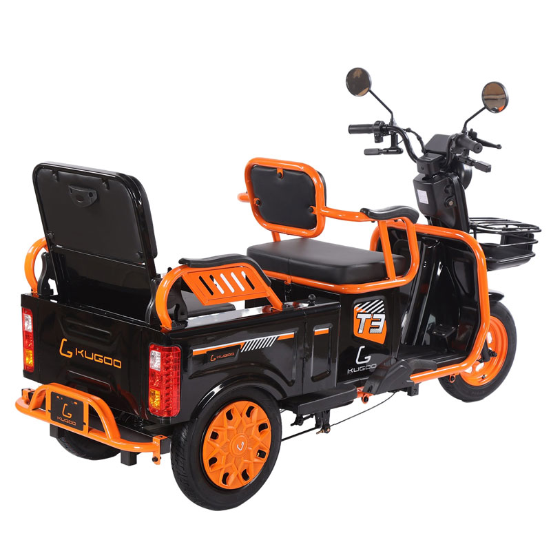 Kugoo T3- это удобный и функциональный электрический трицикл, который подойдёт для всей семьи. Наличие трёх колёс, что обеспечивает повышенную устойчивость и безопасность во время езды. Такая конструкция особенно актуальна для начинающих водителей и тех, кто ценит комфорт и плавность движения без лишних усилий.Электротрицикл способен выдерживать нагрузку до 200 кг, что делает его универсальным средством передвижения как для повседневных поездок, так и для транспортировки небольших грузов. Модель оборудована двумя эргономичными сиденьями, что обеспечивает максимальный комфорт для пассажиров. Конструкция сидений позволяет использовать их как для двух человек, так и для семьи с ребёнком, а также для индивидуальных поездок.