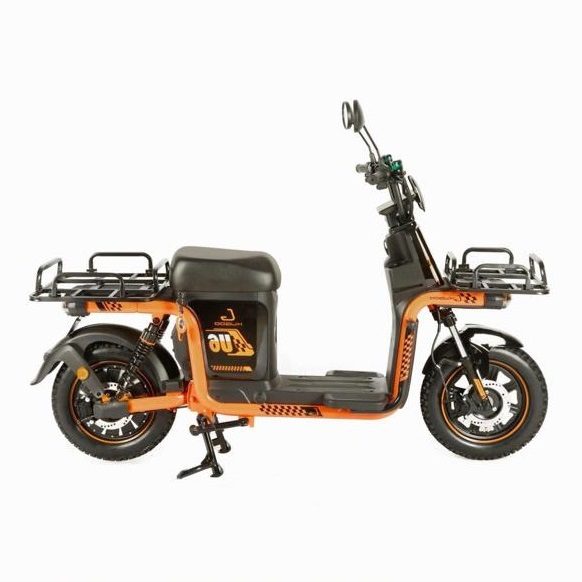 Корзины для грузов спереди и сзади делают электроскутер идеальным для курьеров или тех, кто часто перевозит небольшие грузы.