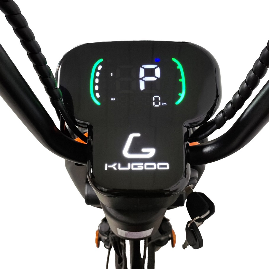 Информационный дисплей, встроенный в приборную панель, обеспечивает пользователя актуальными данными о текущем скоростном режиме, уровне заряда аккумуляторной батареи и пройденном расстоянии.