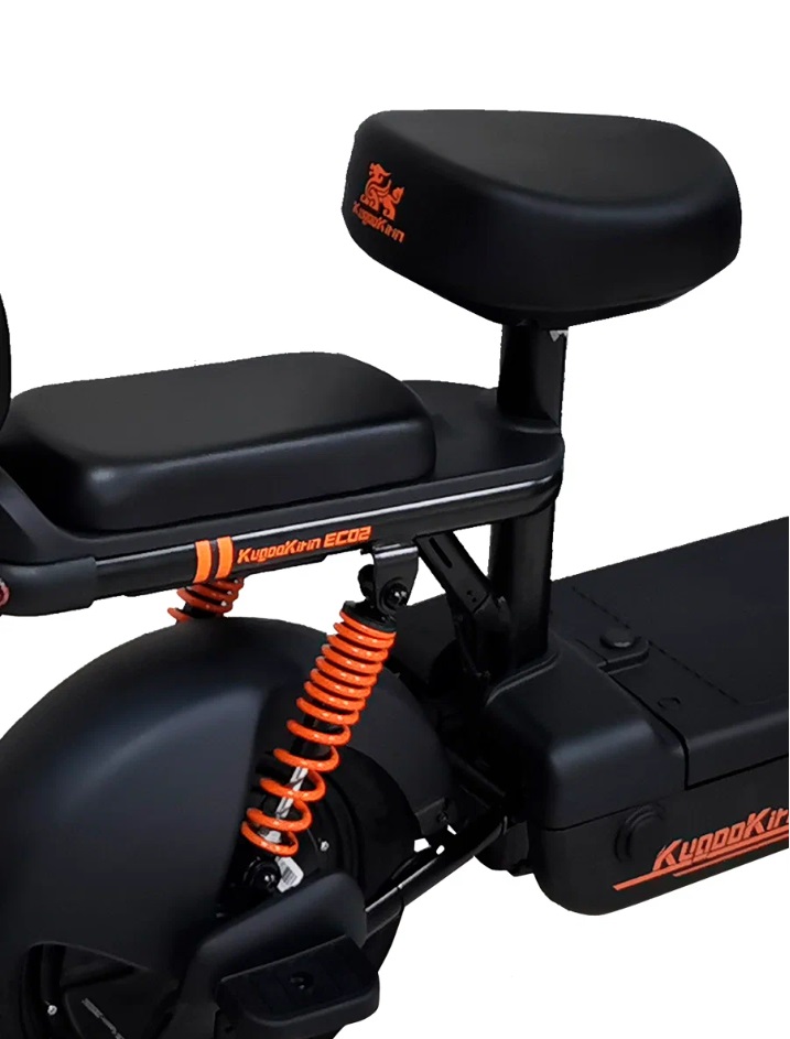 Одной из ключевых особенностей Kugoo EC 02 являются его 12-дюймовые пневматические колеса, обеспечивающие высокий уровень амортизации и устойчивости на различных дорожных покрытиях. Широкая платформа скутера и эргономичное сиденье обеспечивает комфортное положение водителя во время движения.