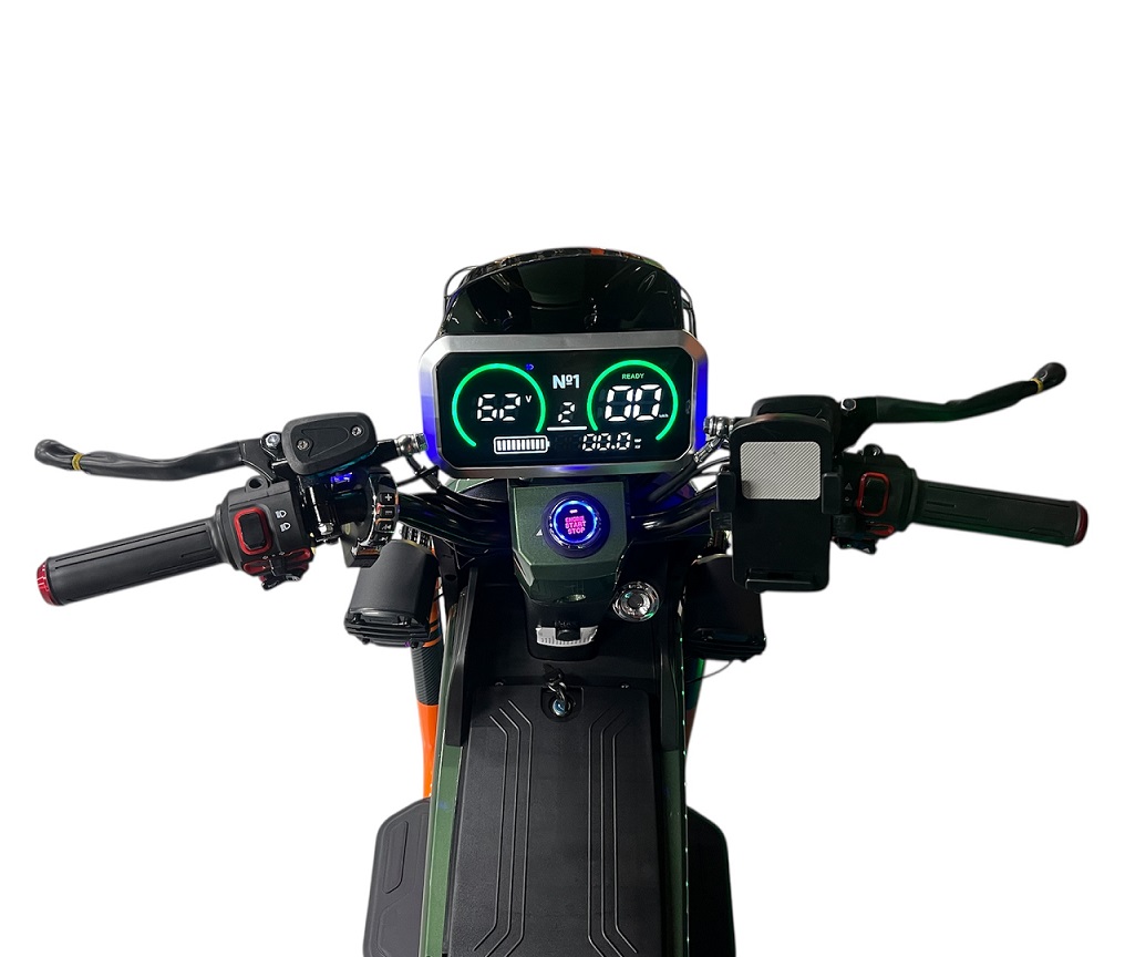 Двигатель мощностью 1600Вт обеспечивает разгон до максимальной скорости 60км/ч, что позволяет эффективно преодолевать городские пробки и демонстрировать его технические возможности. Аккумулятор ёмкостью 40Аh позволяет проезжать расстояния до 120 км на одном заряде.