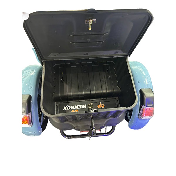 Wenbox WBX1 обладает вместительным багажным отделением, расположенным под сиденьем, а также передними и задними корзинами, что позволяет перевозить груз массой до 200 килограммов. Барабанные тормоза обеспечивают надежное и плавное торможение, а стальная рама гарантирует прочность и долговечность. Автоматическое освещение повышает видимость как в дневное, так и в ночное время.