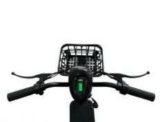 Электроскутер имеет подвесную корзинку на руле, для перевозки личных вещей.