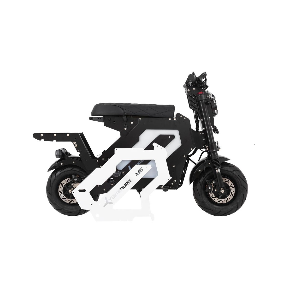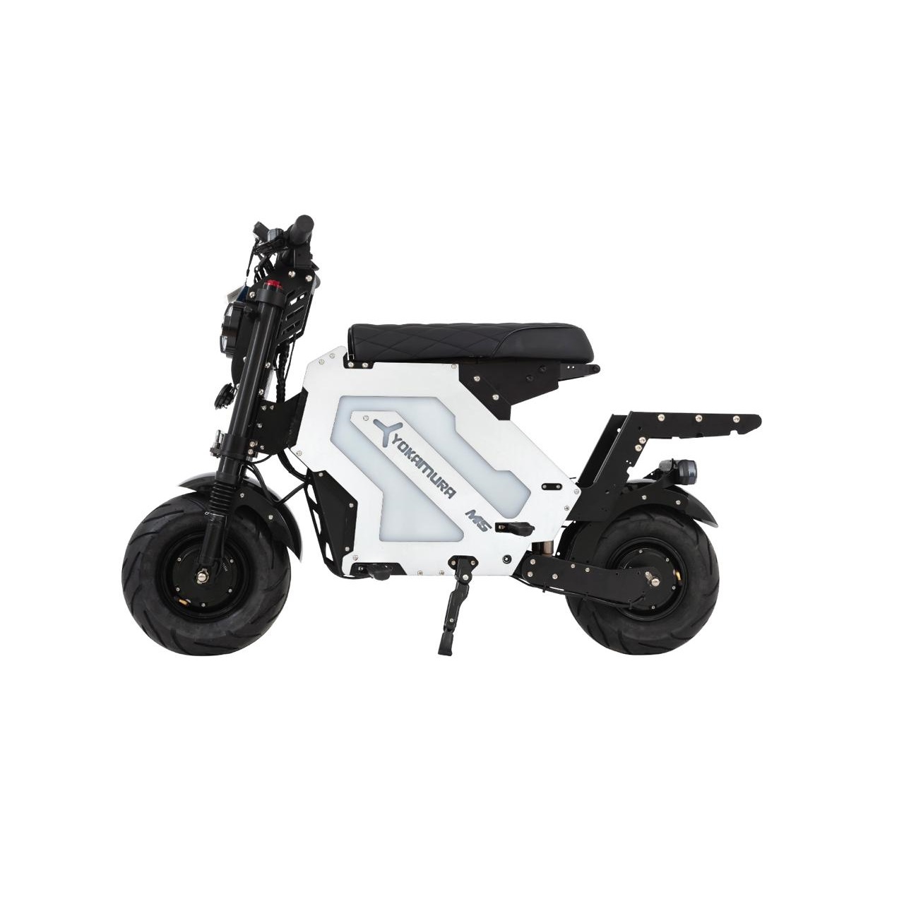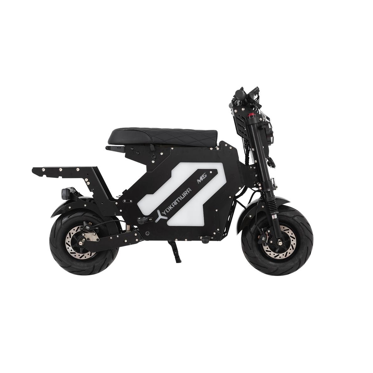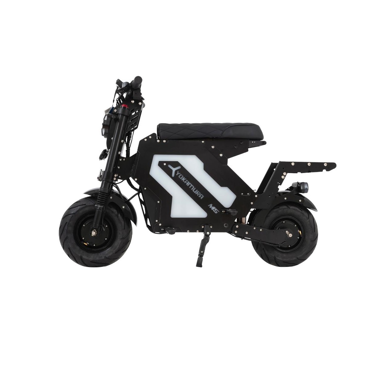 Модель Yokamura M5 Samurai представляет собой инновационное достижение в области электрических транспортных средств, сочетая высокую мощность, эргономичность и передовые технологии. Оснащённый двумя электродвигателями по 4 кВт каждый (с пиковой мощностью до 8 кВт), данный самокат обеспечивает исключительную производительность и динамику. Переключаемый полный привод в сочетании с усиленной стальной рамой, способной выдерживать нагрузку до 150 кг, гарантирует высокую надёжность и долговечность конструкции.