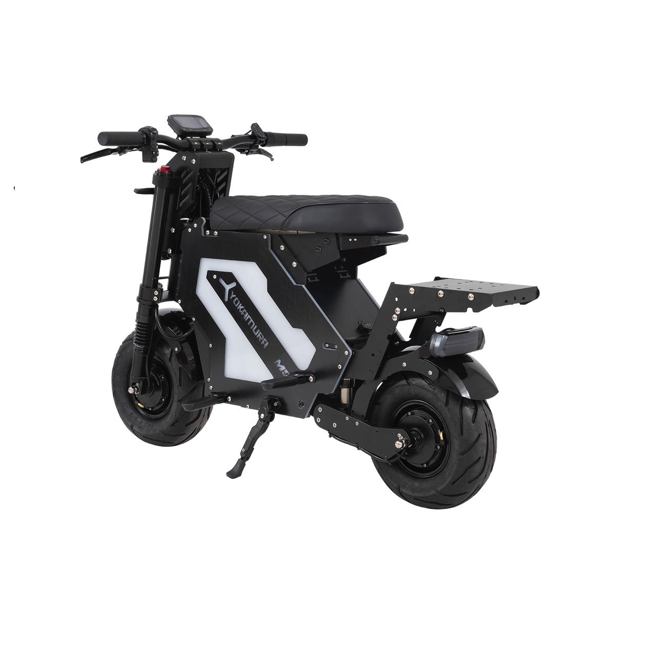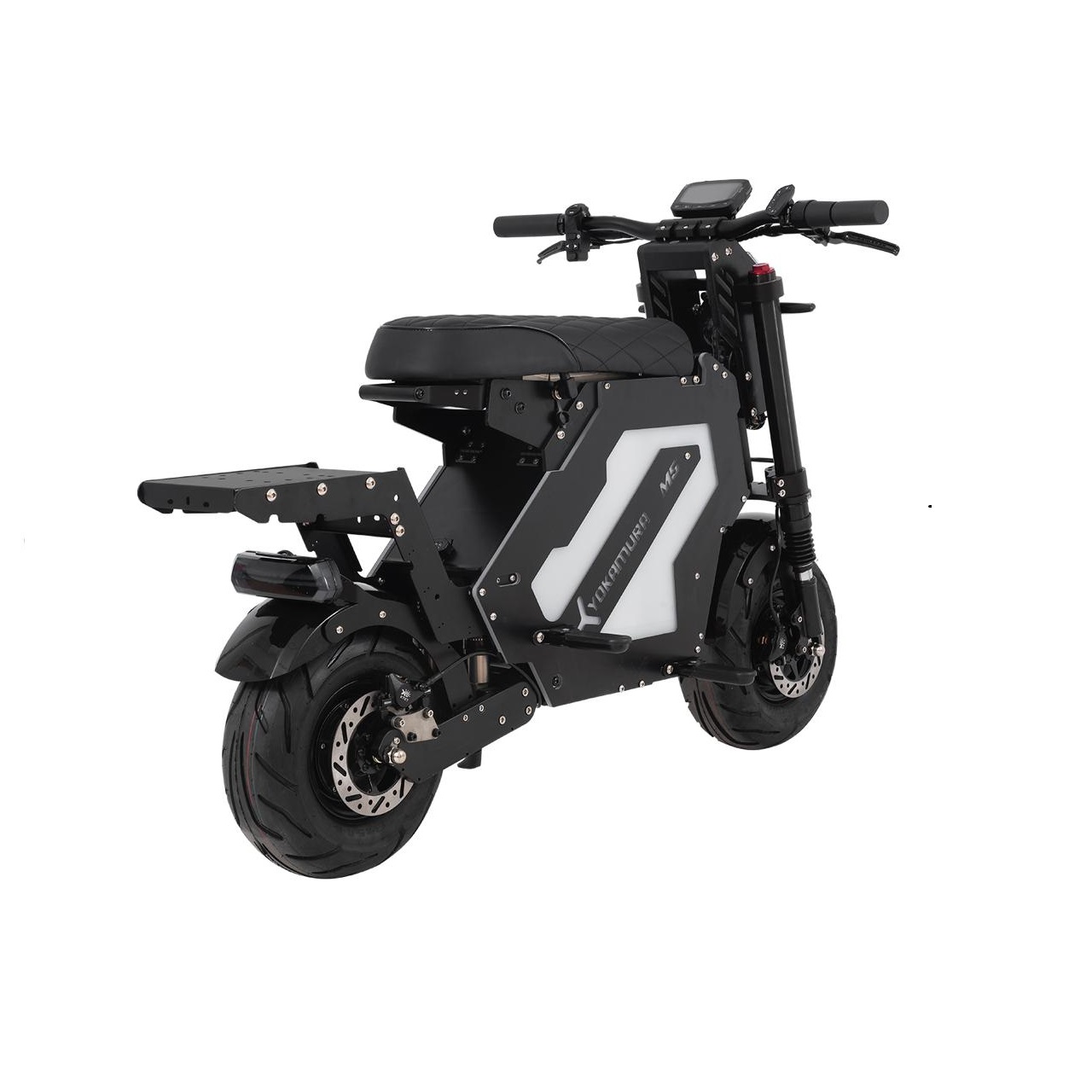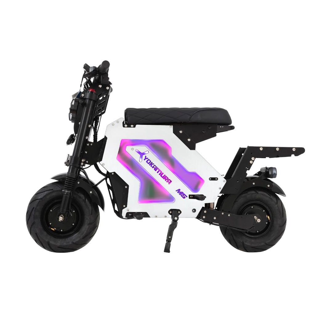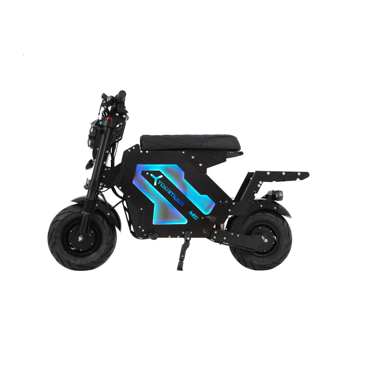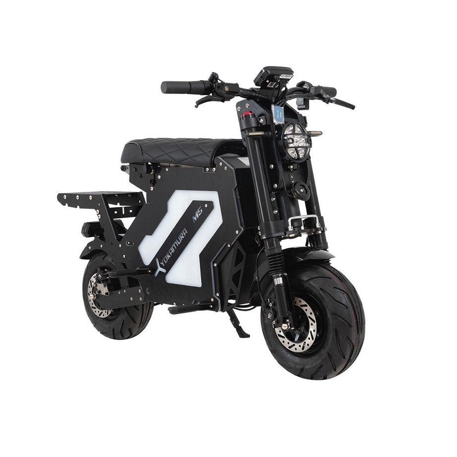 Модель Yokamura M5 Samurai представляет собой инновационное достижение в области электрических транспортных средств, сочетая высокую мощность, эргономичность и передовые технологии. Оснащённый двумя электродвигателями по 4 кВт каждый (с пиковой мощностью до 8 кВт), данный самокат обеспечивает исключительную производительность и динамику. Переключаемый полный привод в сочетании с усиленной стальной рамой, способной выдерживать нагрузку до 150 кг, гарантирует высокую надёжность и долговечность конструкции.