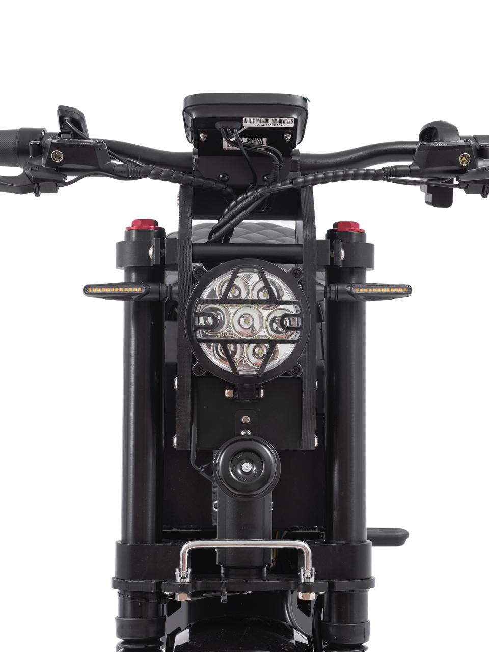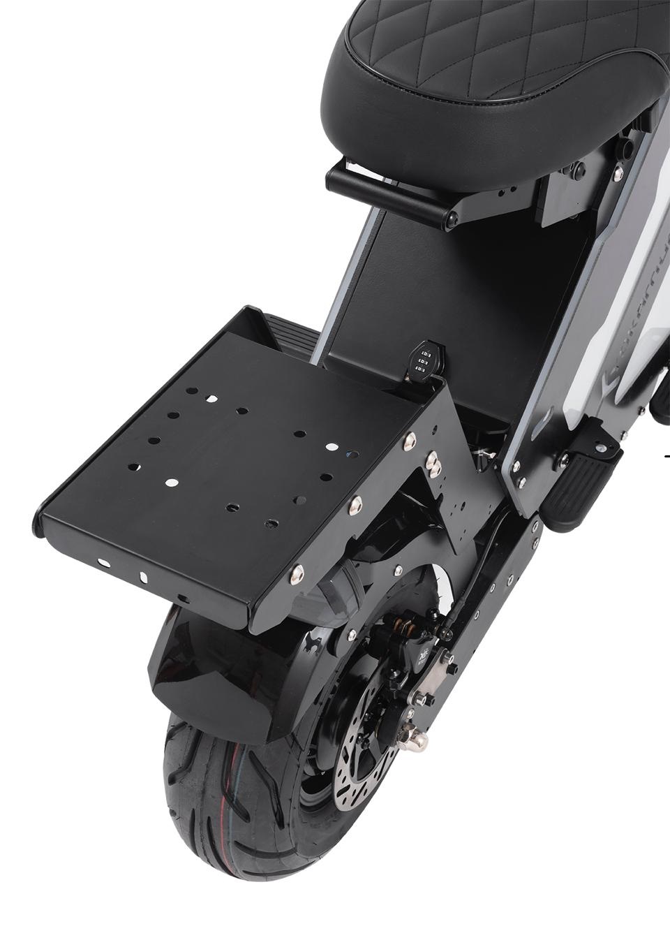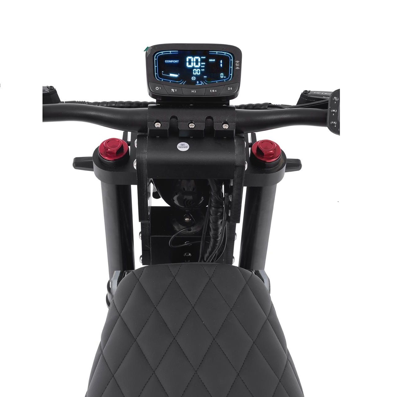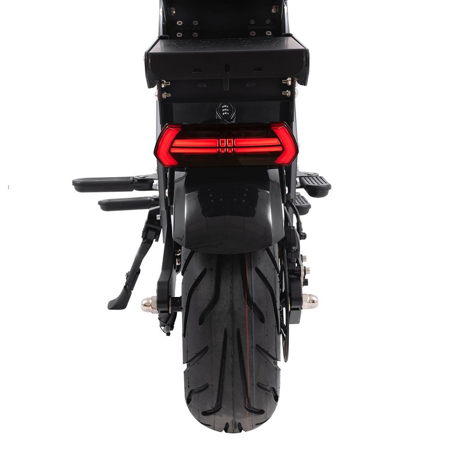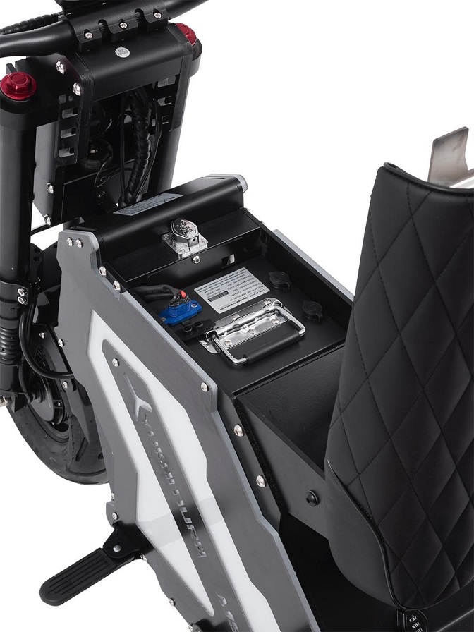 Интегрированная аккумуляторная батарея ёмкостью 72V 50Ач обеспечивает значительный запас хода, что делает M5 Samurai идеальным для длительных поездок. Использование 13-дюймовых пневматических колёс с системой защиты от проколов и гидравлических тормозов гарантирует высокую проходимость и безопасность на различных дорожных покрытиях.