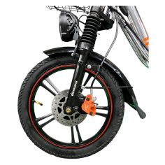 Электровелосипед с колесами 18 дюймов и легкой алюминиевой рамой. Установлены 18 дюймовые колеса шириной 2.5 дюйма, а также передний и задний амортизаторы. Проезжает до 60 км, разгоняется до 55 км/ч и имеет три режима скорости.