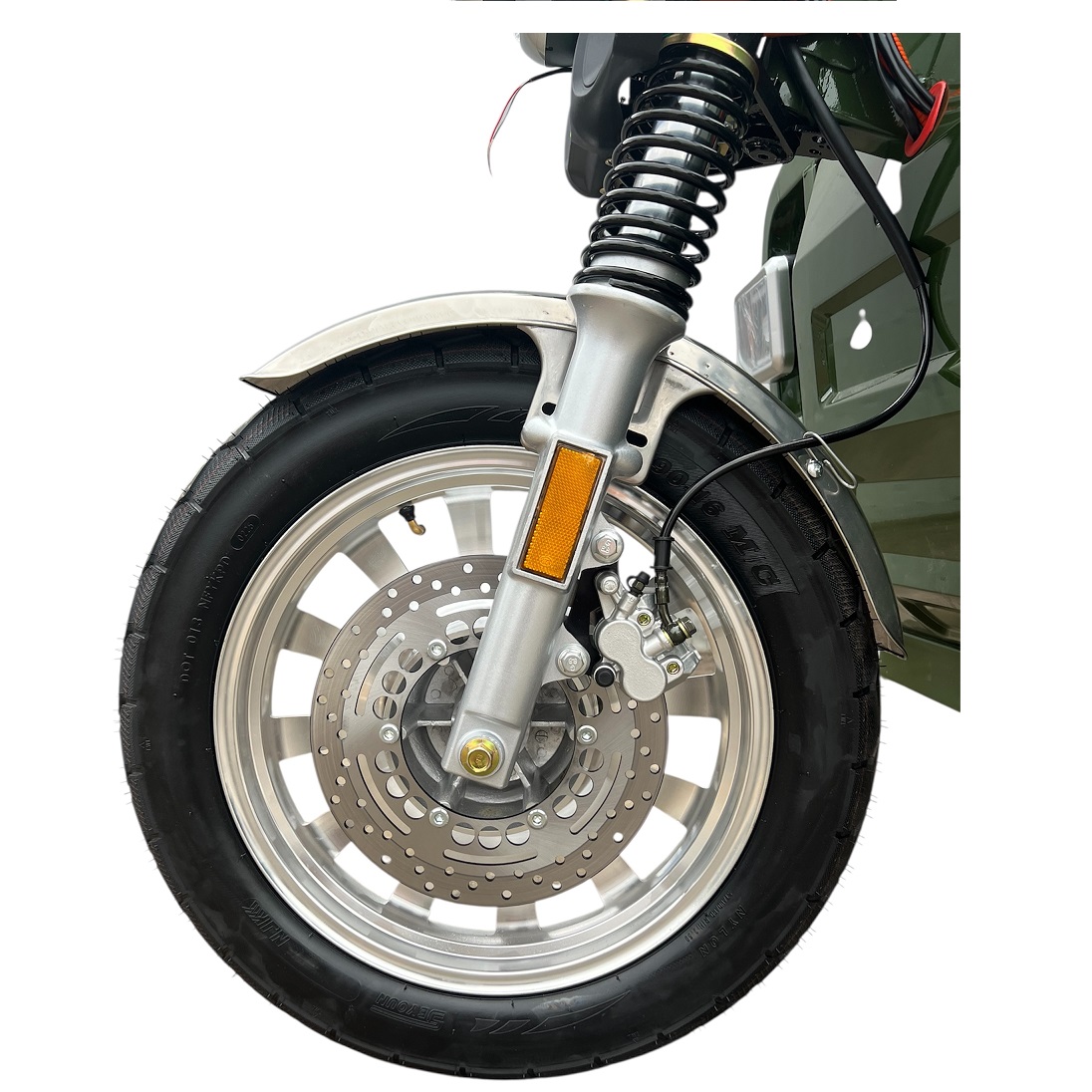 Управление трициклом осуществляется легко одной рукой. Мощный мотор с напряжением 72 вольта, а также внушительные габариты и усиленная амортизация делают данную модель конкурентоспособной и способной справляться с самыми сложными задачами.