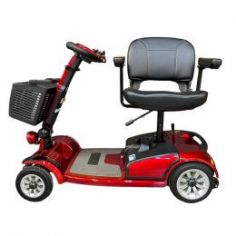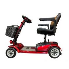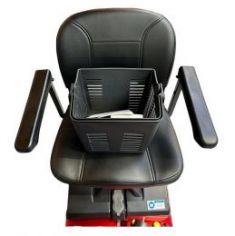 Передвигаться в скутере очень удобно благодаря креслу со спинкой, мягкой подушкой и подлокотниками. Элементы кресла выполнены из прочной экокожи, за которой просто ухаживать. Кресло вращается, обеспечивая удобную посадку с любой стороны. Данная модель имеет три цветовых решения - синий, красный и серый цвета, поэтому подойдет как мужчинам, так и женщинам. На рулевой раме расположена вместительная пластиковая корзина для покупок и личных вещей, которые пригодятся на прогулке.