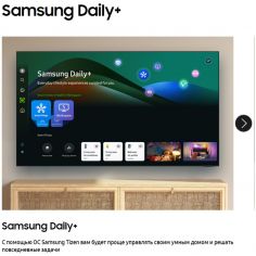 Получите еще больше удовольствия от просмотра ТВ с помощью новейших приложений и сервисов в телевизорах с ОС Samsung Tizen. Вы можете управлять своими повседневными делами с помощью функции Daily+, а также контролировать состояние ваших смарт-устройств с экрана телевизора с помощью приложения SmartThings.