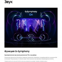 9. Функция Q-Symphony: Гармоничный звук от телевизора и саундбара заполнит каждый уголок пространства. Благодаря Q-Symphony звук от телевизора и саундбара синхронизируется, позволяя наслаждаться объемным звуком без отключения динамиков ТВ.